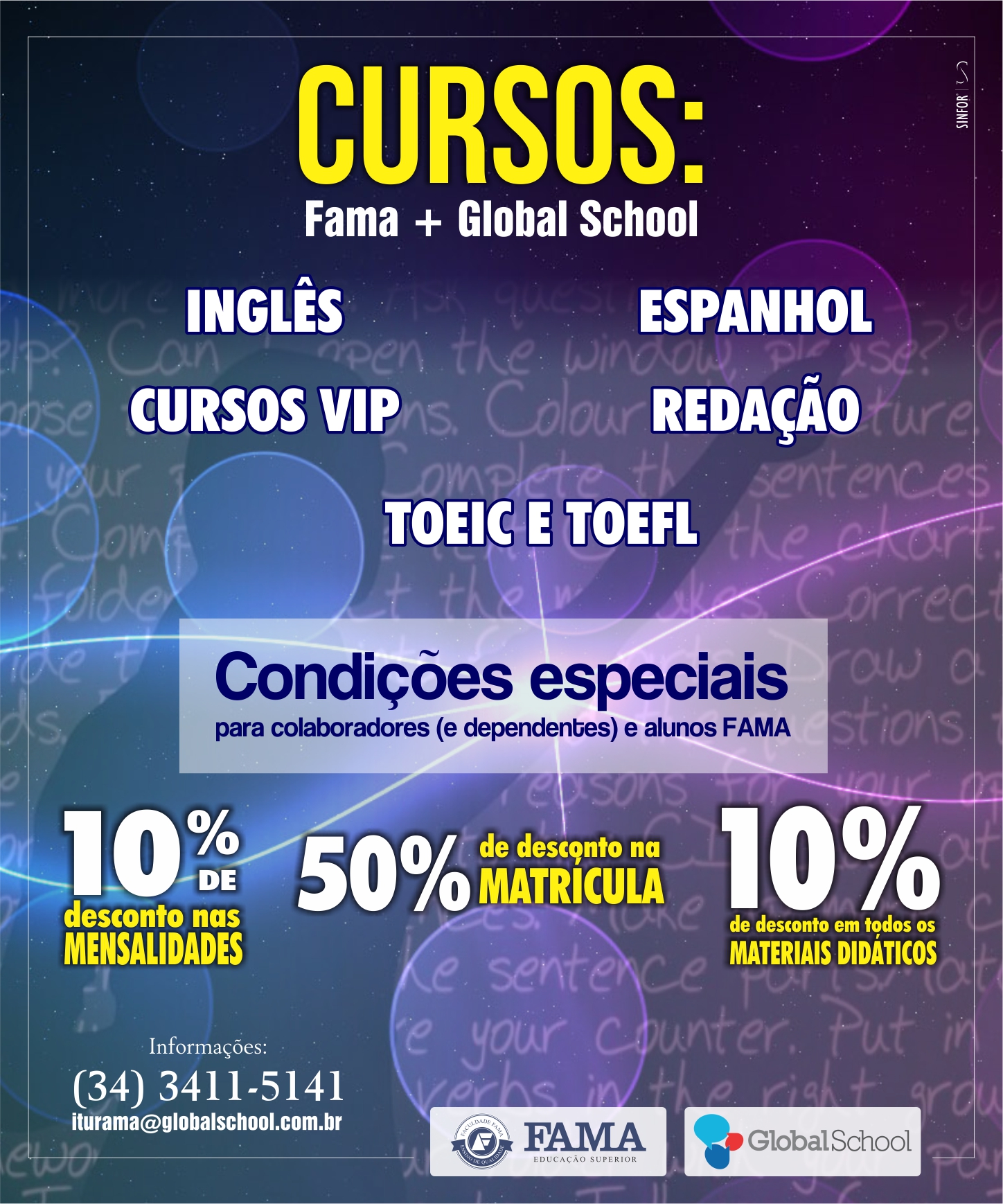 A GLOBAL SCHOOL Iturama está oferecendo uma parceria exclusiva para todos os colaboradores (dependentes) e alunos da Faculdade FAMA.